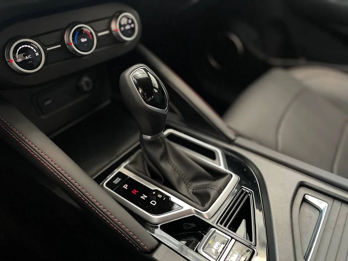 • Отделка сидений экокожей черного цвета с красной прострочкой